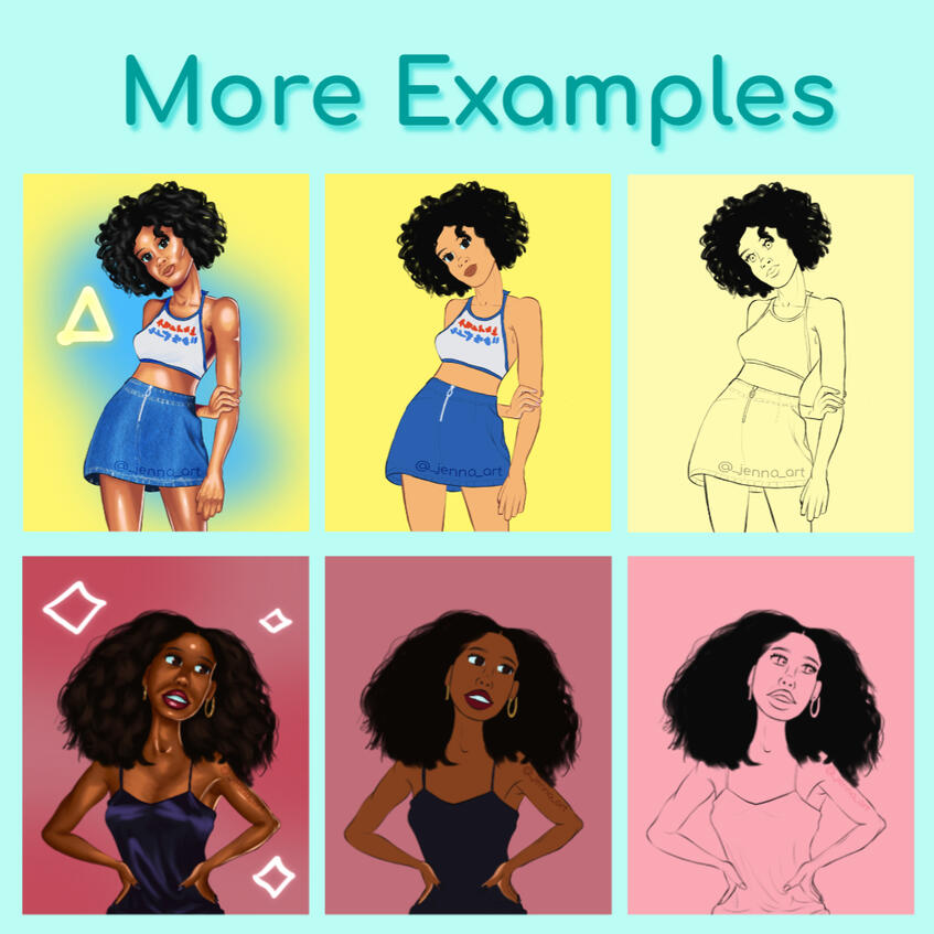(@/_jenna_art)Post the commission on social media accounts with credit on social media (@/_jenna_art)Request I don't post their commission to my social media page